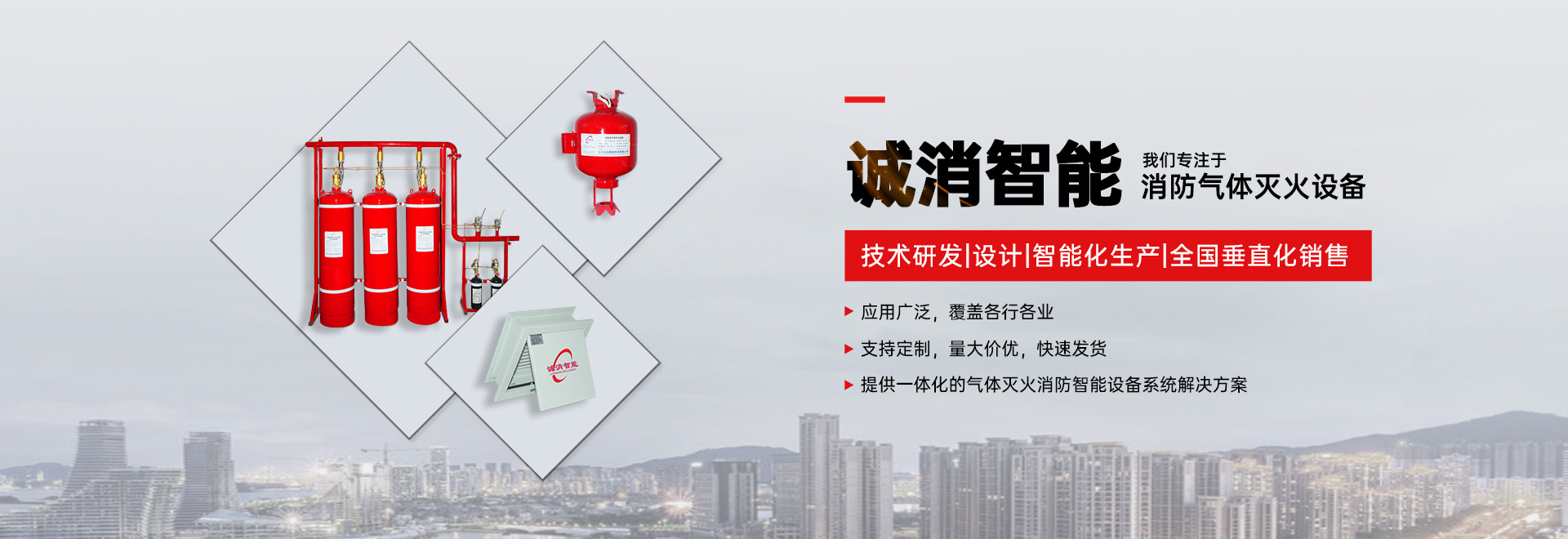 诚消智能公司--位于美丽的“花炮百合之乡”宜春万载,是一家集高新技术研发、设计、智能化生产、全国垂直化销售服务于一体的消防气体灭火设备行业领军企业。公司确立“至诚于专、品鉴于质”的发展理念,数余年来始终坚持以诚信和专业铸守优良品质和优质的服务,在激烈的市场竞争中脱颖而出,深受广大用户的信赖与好评,为国家和人民的财产及生命安全保驾护航!