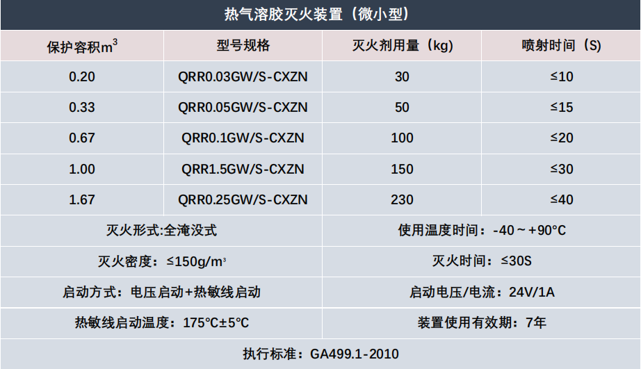热气溶胶是由凝集法形成的凝集性气溶胶,生成的燃烧产物在离开火焰后冷却而凝集成固态粒子由于其粒径小,扩散性能好,可以扩散到灭火空间的任一角落,而且沉降作用较弱,粒子可以在防火保护空间长时间地保持悬浮状态,而作为全淹没灭火剂使用。气溶胶有落地式气胶胶、悬挂式气溶胶小型气溶胶三种装置,可根据灭火需求和灭火场所灵活选择。